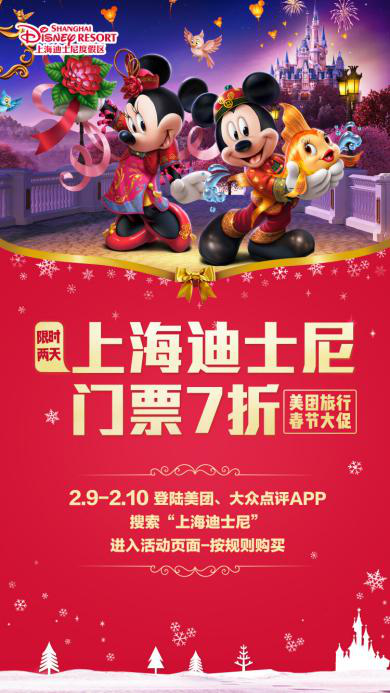 此外,據(jù)記者向多個(gè)景區(qū)了解,上海迪士尼度假區(qū)在春節(jié)期間將呈現(xiàn)奇想花園擊鼓儀式、米奇大街搖擺舞表演、大年初一舞獅點(diǎn)睛儀式等奇妙活動(dòng)。為給消費(fèi)者春節(jié)出游讓利,2月9日到10日,美團(tuán)旅行針對(duì)2月15日(大年三十)/2月21-23日(初六到初八)要去迪士尼的游客推出九折優(yōu)惠,針對(duì)2月24日-3月13日想前往迪士尼的消費(fèi)者推出七折特惠。