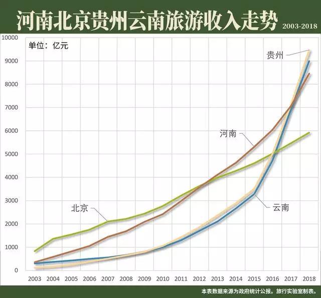 河南旅游一直算是穩(wěn)步成長(zhǎng),她并沒有經(jīng)歷貴州和云南2010年以前的低增長(zhǎng)階段,因此在2013到2016年期間旅游收入甚至在對(duì)比的四省之中排在了第一。