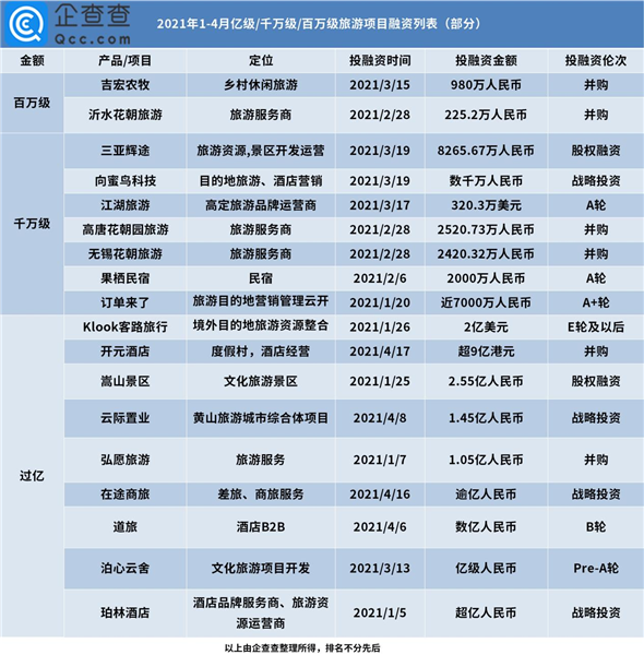 1-4月億級(jí)融資旅游項(xiàng)目9個(gè),酒店民宿備受資本青睞