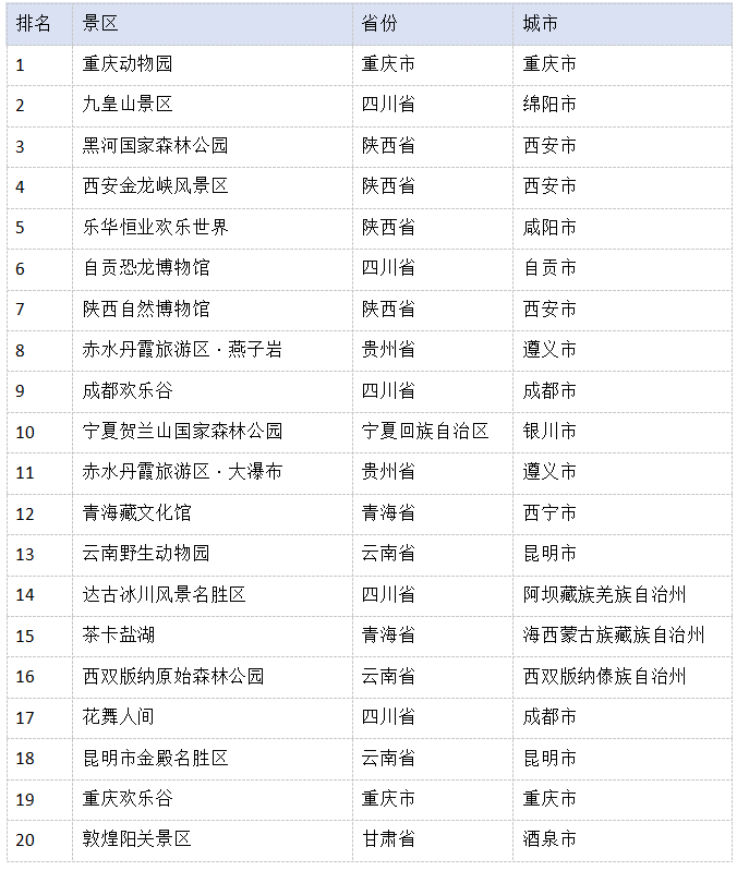 《2021絲路文旅TCI報(bào)告》對(duì)便利度得分排名前20的西部5A、4A景區(qū)進(jìn)行了匯總。