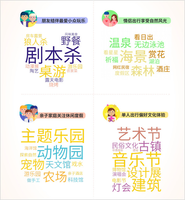 大多數(shù)年輕人喜歡與朋友結(jié)伴開(kāi)展3天以內(nèi)的微度假,同伴不一,微度假的偏好就不同。劇本殺、野餐、游樂(lè)園等是年輕人與朋友出行時(shí)鐘情的玩法,而沉浸式體驗(yàn)藝術(shù)節(jié)、觀賞建筑等文化活動(dòng),則是“一人行”的微度假偏好。