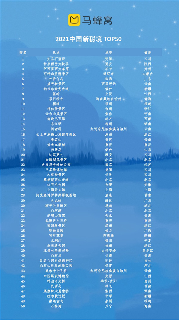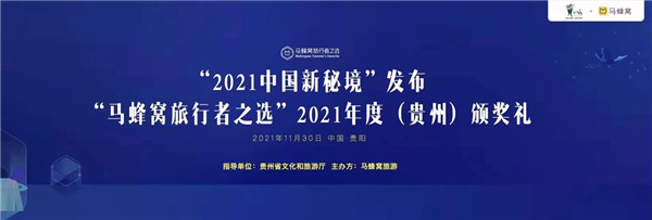 11月30日,貴州省文化和旅游廳指導(dǎo)、馬蜂窩旅游主辦的“2021中國(guó)新秘境”發(fā)布暨“馬蜂窩旅行者之選”2021年度(貴州)頒獎(jiǎng)禮在貴陽(yáng)舉辦。
