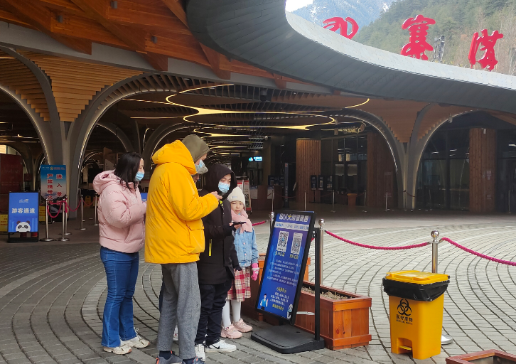 ▲四川九寨溝景區(qū)門口,游客正在掃碼登記 圖片來源:景區(qū)提供