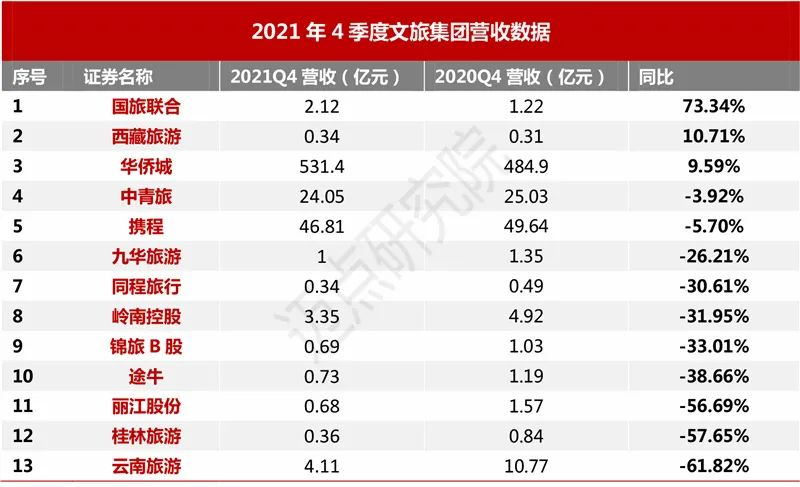 2021年文旅市場的復蘇進度受到業(yè)界廣泛關注,文化和旅游部數(shù)據(jù)顯示;2021年,國內旅游總人次32.46億人次,比上年增加3.67億人次,同比增長12.8%,恢復到2019年的54.0%;國內旅游收入為2.92萬億元,比上年增加0.69萬億元,同比增長31.0%,恢復到2019年的51.0%。2021全年來看,上半年得益于疫情防控,文旅業(yè)的復蘇可謂一路高歌,勢頭喜人。一季度國內旅游人次10.24億,同比增長247.1%;二季度國內旅游總人次8.47億,同比增長33.0%。2021年7月下旬以來,新冠疫情從南京擴散至湖南、湖北等國內多個省市,對文旅行業(yè)造成巨大的沖擊,各地政府實施新一輪嚴格的疫情管控政策,對文旅行業(yè)造成巨大的沖擊,成全年行業(yè)發(fā)展分水嶺,從此多點出現(xiàn)且持續(xù)不斷的疫情,導致文旅集團業(yè)績表現(xiàn)持續(xù)晦暗。數(shù)據(jù)顯示:三季度國內旅游總人次8.18億,同比下降18.3%;四季度國內旅游總人次5.57億,同比下降41.1%。
