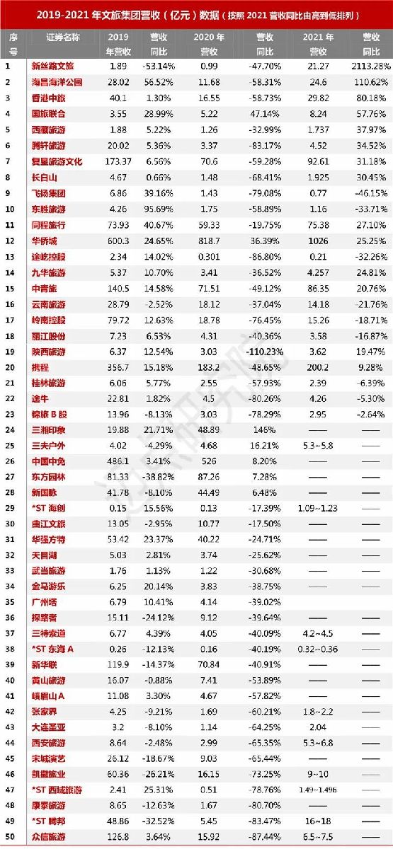 可以說,疫情仍然是影響行業(yè)發(fā)展表現(xiàn)的重要和深刻變量,2021年為后疫情時代的第一年,遠距離出行受限的艱難出境下,文旅集團積極拓展文旅產品類型、場景業(yè)態(tài)升級和數(shù)字化業(yè)務轉型,努力追平2019年疫情前業(yè)績,具體表現(xiàn)如何,本文分析如下。