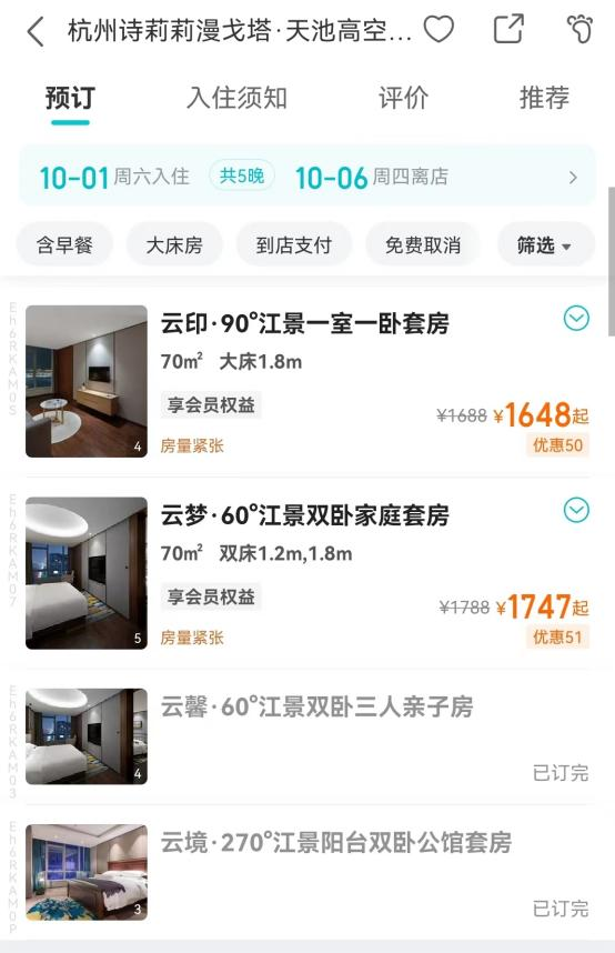 許多旅客已提前預(yù)訂十一黃金周期間的優(yōu)質(zhì)酒店,海景房、落地窗、觀景、溫泉等特殊房型搶購火熱,截至9月12日,部分酒店顯示十一期間房量緊張,一些網(wǎng)紅民宿10月1日-6日的房源已售空。