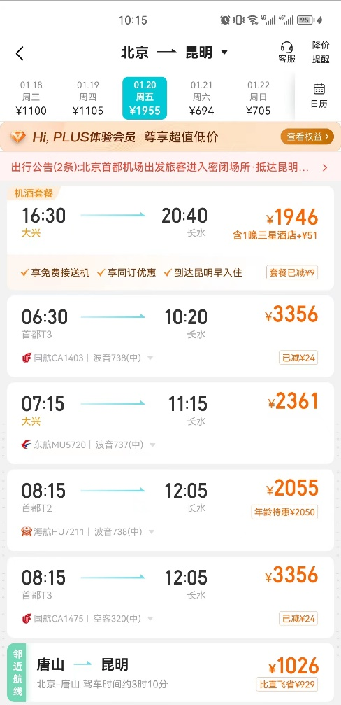隨著預(yù)訂量的增加,機(jī)票平均支付價(jià)格也在持續(xù)走高。在疫情前,春運(yùn)機(jī)票價(jià)格都是一年當(dāng)中的高位,熱門航線往往一票難求。去哪兒平臺(tái)預(yù)測,今年不少航線也將恢復(fù)疫情前的情況,春運(yùn)機(jī)票預(yù)訂高峰提前至火車票開票前,預(yù)計(jì)價(jià)格一周后將維持在高位水平。去哪兒平臺(tái)查詢顯示,春運(yùn)期間從北京、上海、杭州等城市飛往三亞、昆明等旅游城市的經(jīng)濟(jì)艙機(jī)票,已接近全價(jià)。