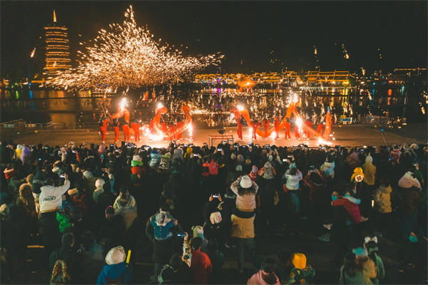 夜經濟同樣為春節(jié)消費增添更多活力。假期期間,各地推出精彩紛呈的兔年燈光展、主題光影秀等沉浸式夜游項目,助推夜間消費熱度不斷攀升。長沙銅官窯古鎮(zhèn)與美團聯合舉辦的“銅官廟會過大年暨長沙首屆自貢國潮燈會”,設置了燈彩街區(qū)、廟會大集等特色年味場景,萬盞花燈組成綿延近2000米的花燈街區(qū)。春節(jié)前四天,銅官窯古鎮(zhèn)景區(qū)接待游客超7萬人次。鄭州中牟“建業(yè)·華誼兄弟電影小鎮(zhèn)”的夜游節(jié)目《一路有戲》熱情上演,游客們可在電影大道上與演員飆戲,沉浸式欣賞演出。