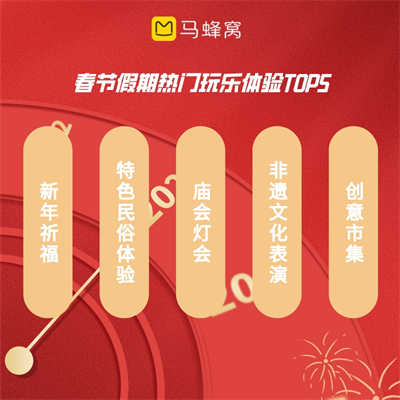 2023的春節(jié)旅游市場異?;鸨夷晡秲菏恪qR蜂窩大數(shù)據(jù)顯示,春節(jié)假期期間,“長途游”持續(xù)升溫,同比增長超285%,云南、廣東、海南等溫暖宜人的南方目的地成為游客長途出行首選。“團圓”是春節(jié)假期主旋律,家庭親子出行訂單量占比超過60%。以花燈、廟會、集市為代表的傳統(tǒng)年俗項目成為了各地春節(jié)慶?;顒拥?ldquo;主角”,和家人一起在傳統(tǒng)年俗活動中享受春節(jié)氛圍,是這屆年輕人的過年新時尚。
