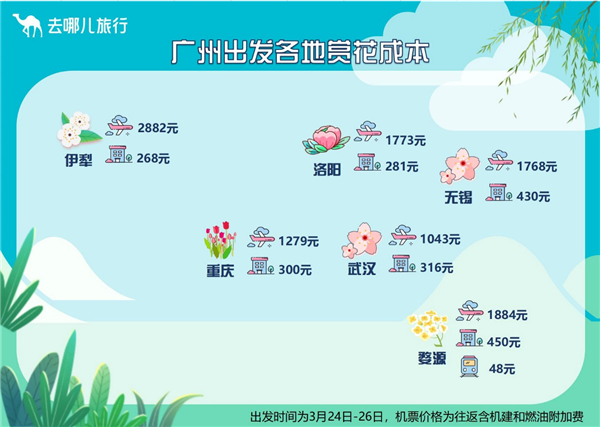 各地出發(fā)賞花成本如何?去哪兒算了一筆賞花成本賬: