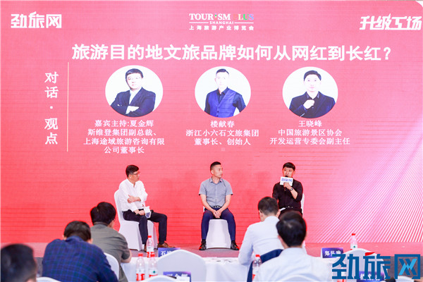在大會對話環(huán)節(jié),圍繞著《旅游目的地文旅品牌如何從網(wǎng)紅到長紅?》的主題,在斯維登集團副總裁、上海途域旅游咨詢有限公司董事長夏金輝的主持下,浙江小六石文旅集團董事長、創(chuàng)始人樓獻春和中國旅游景區(qū)協(xié)會開發(fā)運營專委會副主任王曉峰展開了一場精彩對話。