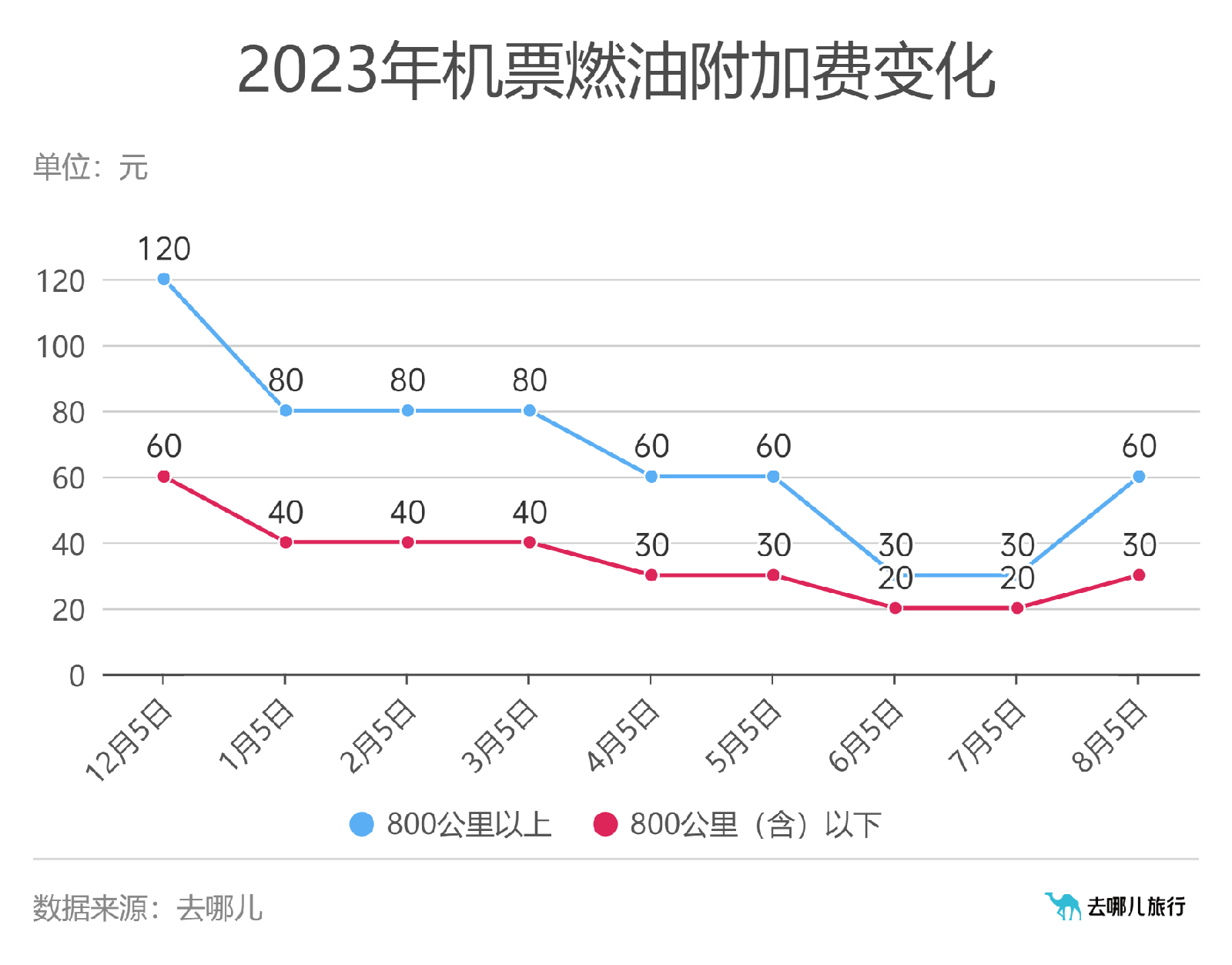 8月1日,去哪兒接到中國東方航空公司、九元航空公司消息:自2023年8月5日(出票日期)起,成人旅客:800公里(含)以下航線每位旅客收取30元燃油附加費,800公里以上航線每位旅客收取60元燃油附加費。8月有出游需求的旅客,在5日前訂票可節(jié)省10/30元燃油附加費。