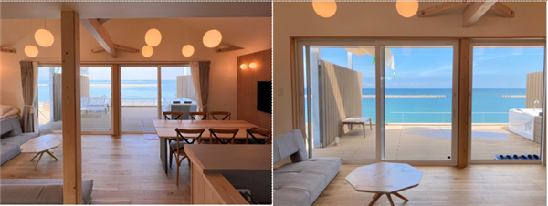 站在寬敞的別墅露臺(tái)上眺望白良濱的絕美海岸線,視野中將呈現(xiàn)“果凍”般清澈透明的海水和細(xì)軟的白色沙灘。觀賞美景之余,房客可在天然溫泉的滋養(yǎng)中舒緩身心,享受海邊度假的愜意。