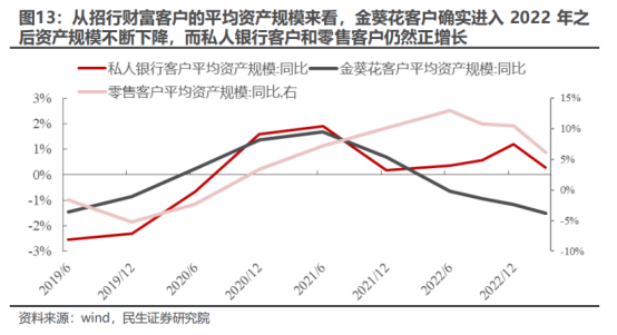 招商銀行財(cái)報(bào)顯示,2022年,私行(1000萬(wàn)元以上)、零售(50萬(wàn)元以下)、金葵花(50-1000萬(wàn)元)的人均資產(chǎn)規(guī)模增速,分別為0.6%、6.0%、-0.8%。