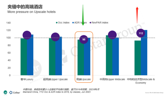比如,從年中的數(shù)據(jù)來(lái)看,經(jīng)濟(jì)型酒店和奢華酒店的業(yè)績(jī)都很亮眼,唯一不如2019年的就是夾在中間的“高端酒店”;以及旅游出行板塊整體恢復(fù)強(qiáng)勁,但客單價(jià)更低的鐵路,恢復(fù)程度要好于民航。