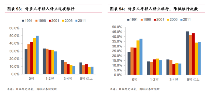 日本的年輕人,早就開(kāi)始另一種維度的“特種兵旅游”——不斷縮小出游半徑,乃至降低過(guò)夜旅行的比例,以達(dá)到最省錢的目標(biāo)。在1990-1998年間,很多日本20多歲的年輕人消費(fèi)力下滑非常明顯。
