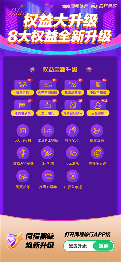 同程旅行相關(guān)負責人表示,希望借助本次黑鯨會員產(chǎn)品升級,讓更多用戶使用黑鯨會員,獲得更優(yōu)惠的旅游出行產(chǎn)品和更優(yōu)質(zhì)的旅行服務,增強用戶對于平臺服務的滿意度。未來,同程旅行也將繼續(xù)完善黑鯨會員體系,為用戶提供更多實用權(quán)益,用戶的旅行消費更方便、更快捷。