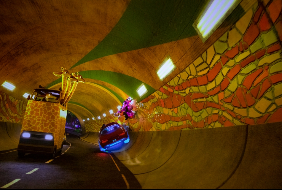 “瘋狂動(dòng)物城:熱力追蹤”是中國(guó)內(nèi)地首個(gè)無(wú)軌乘騎游樂(lè)設(shè)施