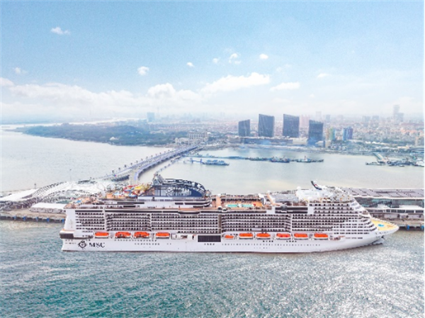 圖1:“亞洲旗艦”MSC榮耀號今日首度抵達上海吳淞口國際郵輪港,將于3月16日領(lǐng)銜啟航