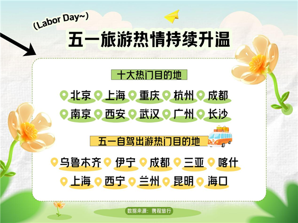 入境游方面,五一假期,入境游預(yù)訂訂單同比增長130%,主要入境國家包括日本、美國、韓國、加拿大、馬來西亞、泰國、英國、澳大利亞、俄羅斯、法國。境外游客喜歡的國內(nèi)目的地包括上海、北京、廣州、成都、青島、杭州、重慶、深圳、西安、昆明。