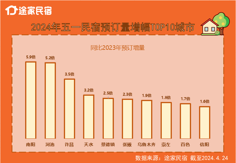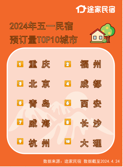 途家民宿發(fā)布的《2024五一民宿出游預(yù)測報告》顯示,截至4月24日,全平臺熱門城市預(yù)訂量平均同比去年增兩成,成為民宿最火五一;隨著市場經(jīng)濟活力的不斷增強和整個民宿供應(yīng)鏈的全面復(fù)蘇,優(yōu)質(zhì)民宿供給量持續(xù)增加,今年五一去住民宿更實惠了,民宿價格較去年持平,部分熱門城市均價同比下降10%左右。