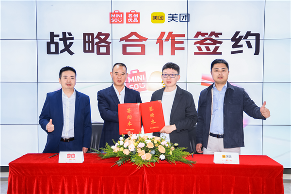 美團(tuán)核心本地商業(yè)CEO王莆中和名創(chuàng)優(yōu)品集團(tuán)董事會(huì)主席兼首席執(zhí)行官葉國富現(xiàn)場(chǎng)見證簽約。美團(tuán)副總裁、閃購事業(yè)部負(fù)責(zé)人肖昆,美團(tuán)休娛和麗人業(yè)務(wù)部負(fù)責(zé)人陳一方和名創(chuàng)優(yōu)品集團(tuán)副總裁兼中國營運(yùn)總經(jīng)理姚建政代表雙方簽訂深度戰(zhàn)略合作協(xié)議。