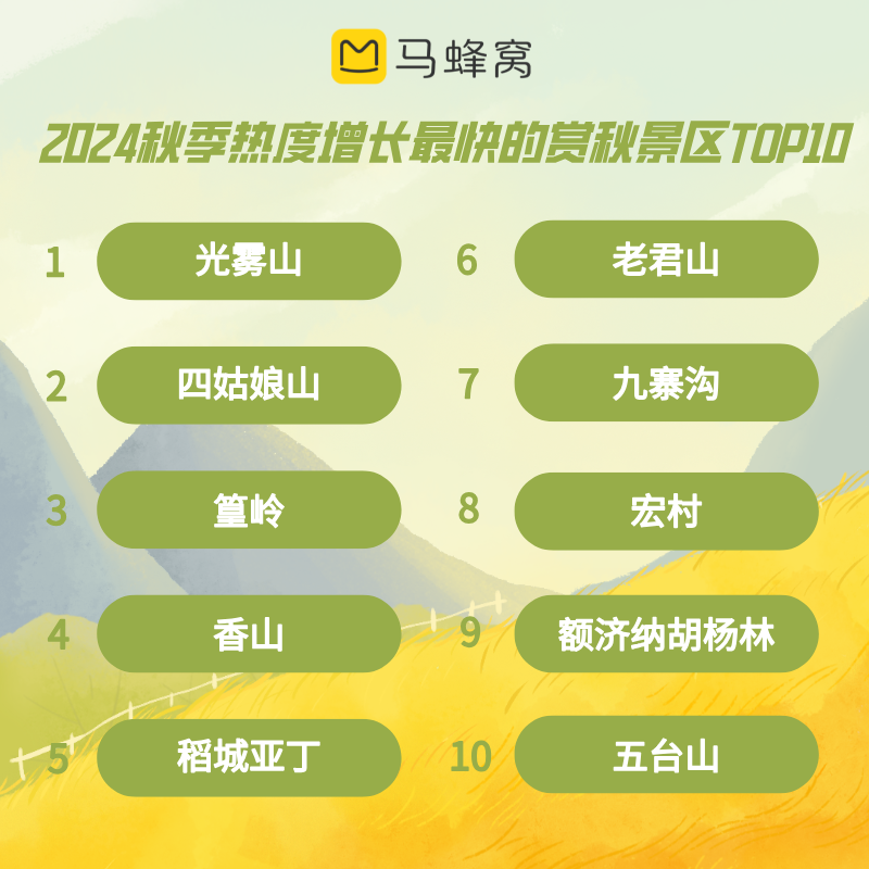 入秋,馬蜂窩發(fā)布2024年秋季“旅行蜂向標(biāo)”,根據(jù)馬蜂窩平臺(tái)的用戶(hù)瀏覽、搜索、分享、消費(fèi)、評(píng)價(jià)等旅游大數(shù)據(jù),對(duì)今秋最新旅行消費(fèi)趨勢(shì)進(jìn)行分析和預(yù)測(cè),啟發(fā)游客賞秋靈感,為游客提供出行決策參考。