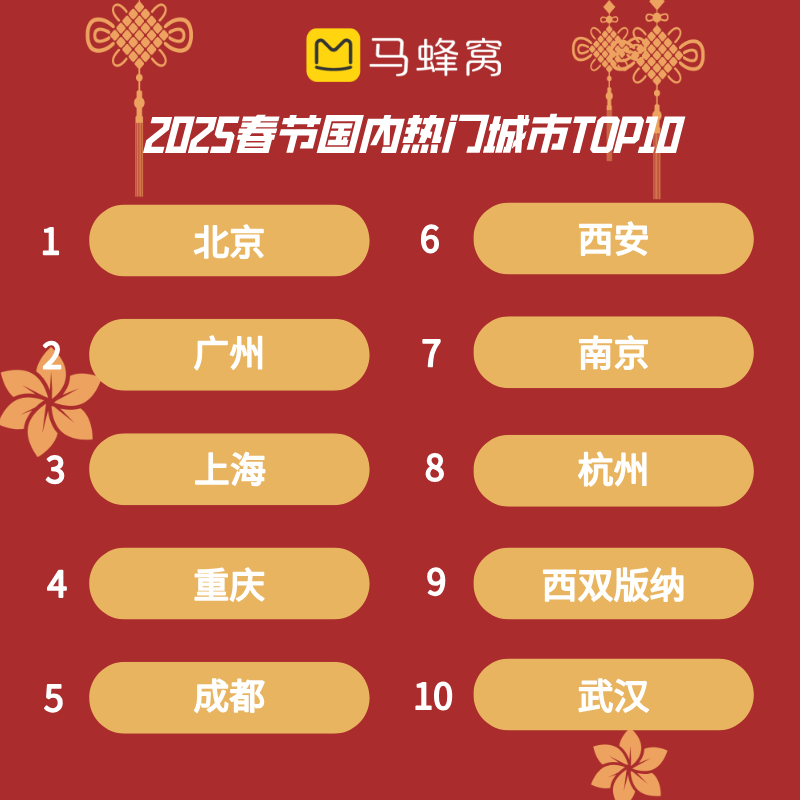 文化氛圍濃厚的北京在春節(jié)假期熱門城市榜單上拔得頭籌,廣州、上海、重慶、成都、西安、南京、杭州、西雙版納、武漢緊隨其后。故宮、天壇、雍和宮等名勝古跡游人如織,各大廟會、以及博物館推出的春節(jié)主題展覽同樣精彩紛呈。中國工藝美術(shù)館(中國非物質(zhì)文化遺產(chǎn)館)“過年——春節(jié)主題展”帶來的120余項春節(jié)相關非遺傳承,300余件國家級和省級非遺相關作品吸引無數(shù)游客,帶動中國工藝美術(shù)館熱度上漲115%。