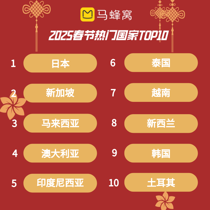 國內(nèi)市場“熱情洋溢”,海外市場同樣迎來客流高峰,日本依舊穩(wěn)坐出境游熱門目的地榜首,新加坡、馬來西亞、澳大利亞、印度尼西亞、泰國、越南、新西蘭、韓國、土耳其進入前十。景色宜人且玩法體驗豐富的濱海地區(qū)以及熱帶海島是全家出國度假首選,春節(jié)熱門國外目的地榜單中的“含海量”居高不下。