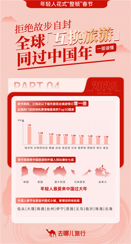 值得一提的是,隨著越來越多國家免簽,出境游機(jī)票價(jià)格和酒店價(jià)格的降低,以及新開航線越來越多,越來越多的小城居民可以嘗試出國過年的滋味。