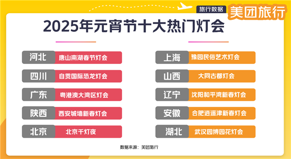 元宵燈會(huì)熱度上漲351% 美團(tuán)旅行發(fā)布2025元宵節(jié)十大熱門燈會(huì)