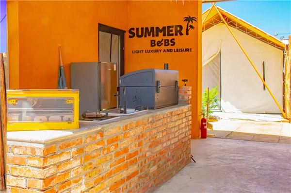雖然是帳篷民宿,但內(nèi)部設施設備一應俱全。有客人評價道,“每個帳篷里都有獨立淋浴和衛(wèi)生間,很方便。晚上和朋友們在院子里一起吹風吃燒烤,太愜意了。”