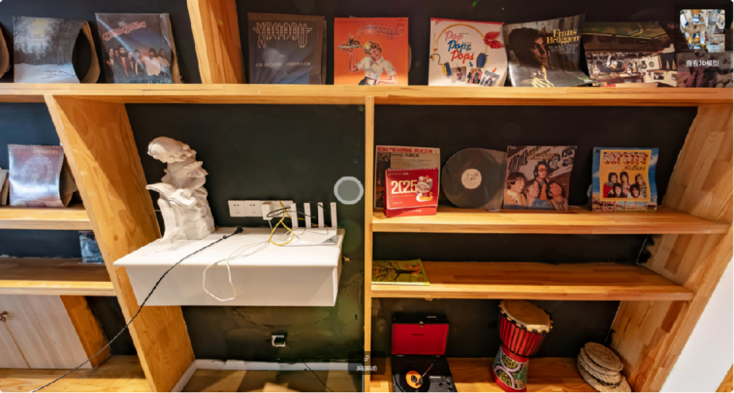 不僅能沉浸式看到民宿內(nèi)的結(jié)構(gòu)陳設(shè),甚至能放大房東珍藏的唱片書籍,還能以3D的方式看到民宿外的風(fēng)景街景;房東24小時(shí)在線,用自己的方言,介紹自己的屋子和屋里的寶貝們……