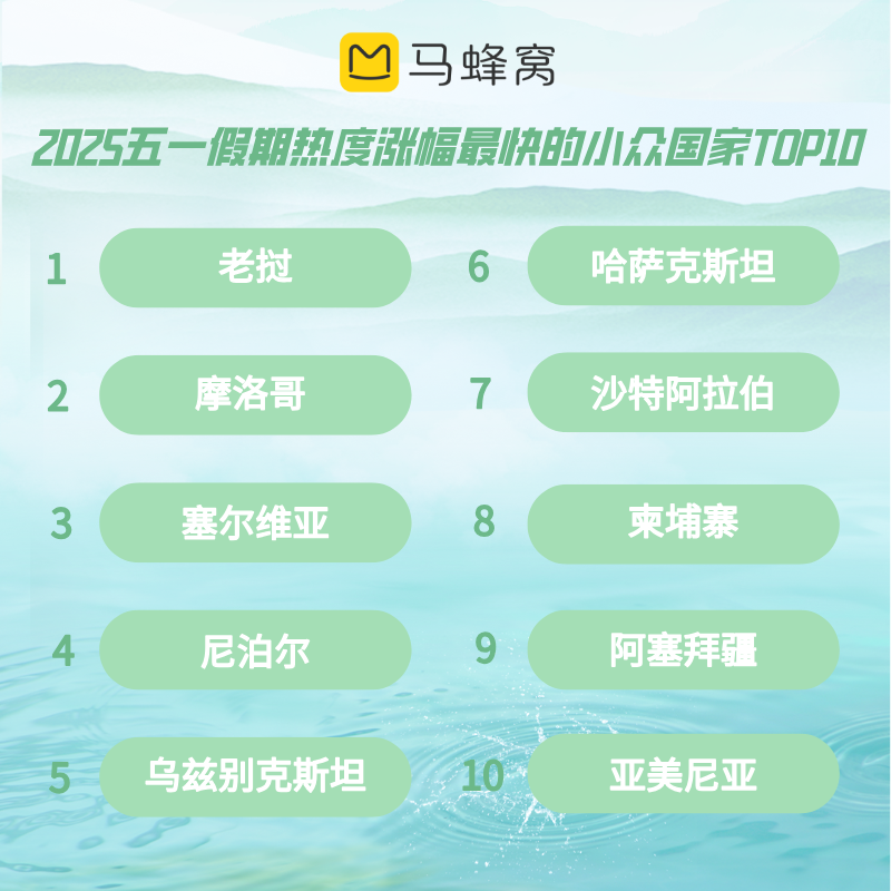 簽證便利無疑是小眾海外目的地“破圈”的重要助力之一,熱度漲幅最快的小眾國家中,免簽國家占據(jù)六席。仿如“一千零一夜”世界的烏茲別克斯坦在今年五一迎來大批國內(nèi)游客,熱度上漲124%。節(jié)前不久官宣免簽的阿塞拜疆熱度環(huán)比上漲131%,“阿塞拜疆玩法攻略”、“高加索三國串玩路線”等問題成為近期馬蜂窩站內(nèi)的熱門搜索和咨詢問題。