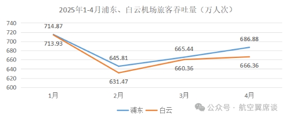 4月份,也創(chuàng)下2025年以來月度最大差距,這個月浦東機場旅客吞吐量比白云機場高出20萬人次。