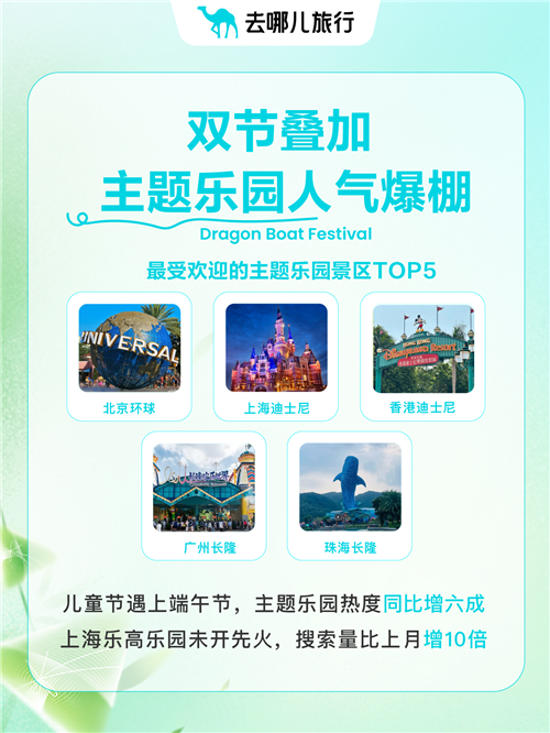 今年端午恰逢六一兒童節(jié),雙節(jié)疊加拉動(dòng)親子游火熱。去哪兒旅行大數(shù)據(jù)顯示,主題樂園景區(qū)在這個(gè)端午小長假最受歡迎,預(yù)訂量同比增六成。