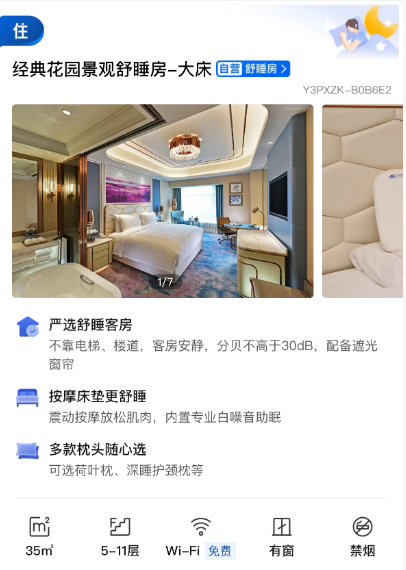 社交媒體上,商旅人士對(duì)酒店睡眠質(zhì)量的吐槽比比皆是。輾轉(zhuǎn)反側(cè)、入睡困難、醒來疲憊……“如何在酒店睡個(gè)好覺”已成為困擾超一億商旅用戶的核心痛點(diǎn)。根據(jù)《中國睡眠研究報(bào)告(2025)》顯示,床墊、枕頭以及被褥對(duì)差旅群體的睡眠質(zhì)量影響明顯:51.46%的差旅人士被調(diào)查者認(rèn)為床墊軟硬度對(duì)于睡眠質(zhì)量的影響重要。對(duì)于出差忙碌的商旅人士,一天繁雜的工作結(jié)束后,想要的只有快速入眠。攜程智能助眠按摩舒睡房正是精準(zhǔn)錨定這一需求:其搭載的AI薄墊能識(shí)別用戶體型與睡姿,提供多種身體按摩方案,有效緩解旅途勞頓;同時(shí)結(jié)合白噪音助眠音樂、專業(yè)護(hù)頸深睡枕、可調(diào)節(jié)高低的荷葉枕等配置,全方位營造沉浸式舒睡環(huán)境。除了商旅客群外,銀發(fā)群體也尤其關(guān)注旅途中的酒店好眠需求,根據(jù)攜程的不完全調(diào)研顯示,60歲以上人群對(duì)“腰椎護(hù)脊床墊”需求同比增長210%。此次新推出的智能按摩床墊亦可滿足銀發(fā)群體的“在酒店睡個(gè)好覺”的需求。