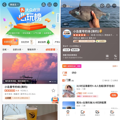 在這里,帶客人出海的船長、船員都是海釣經(jīng)驗豐富的本地人,了解當?shù)睾S虻钠⑿裕仓吏~群可能的聚集點。小島壹號釣場有一位老船手今年三十七歲,但出海經(jīng)驗已有二十多年,如今每天帶客人出海,挑釣點、教客人都是得心應(yīng)手,備受好評。“現(xiàn)在的海釣商戶都很重視通過線上引流,比線下的效果來得快,很多客人都是看了‘必玩榜’找到小島壹號釣場的。今年,我們還準備拓展一些新項目。”徐經(jīng)理說,與其他商家不同,小島壹號除了做海釣,還可以帶客人出海看日出,今年他們考慮新增客單價更高的游船項目,吸引一些只想觀光的游客。