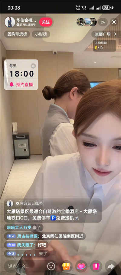 華住會在全國有上萬家門店,每個門店都可以安排員工在店內(nèi)實景直播。