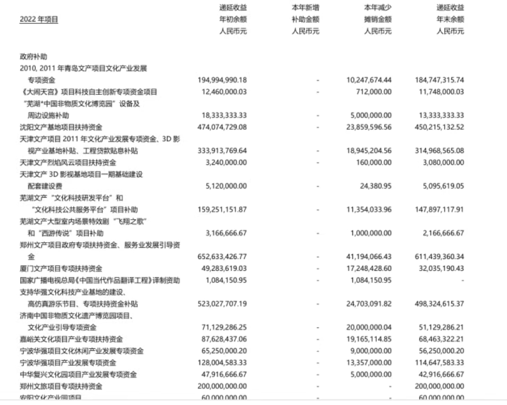 主業(yè)盈利承壓。據(jù)2024年財報,主題公園業(yè)務(wù)貢獻(xiàn)了華強(qiáng)方特約80%的營收,達(dá)56.53億元。其中運(yùn)營收入46.14億元,同比下降4.18%;運(yùn)營成本卻同比增長9.17%,這一降一升導(dǎo)致運(yùn)營毛利率大幅下滑了21%。此外,公司還過分依賴地方政府補(bǔ)助。招股書顯示,2016—2018年,華強(qiáng)方特收到的政府補(bǔ)助金額分別為3.53億元、3.30億元和3.27億元,均占當(dāng)年利潤總額的35%以上。直到2022年,政府補(bǔ)助依然是重要利潤來源,約3.69億元,以文化產(chǎn)業(yè)發(fā)展專項(xiàng)資金以及項(xiàng)目補(bǔ)助、扶持資金為主。