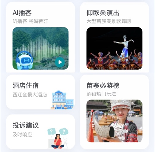 新版“AI游西江”智能體一改過去用戶主動(dòng)描述需求或提問的開放對話模式,采用卡片式布局,以多個(gè)清晰模塊直觀展示各項(xiàng)核心功能,首次實(shí)現(xiàn)景區(qū)服務(wù)的全流程數(shù)字化整合。游客通過統(tǒng)一入口即可完成行前規(guī)劃、行中服務(wù)、行后反饋的全周期需求,大幅降低用戶使用門檻,顯著提升服務(wù)效率和精準(zhǔn)度。