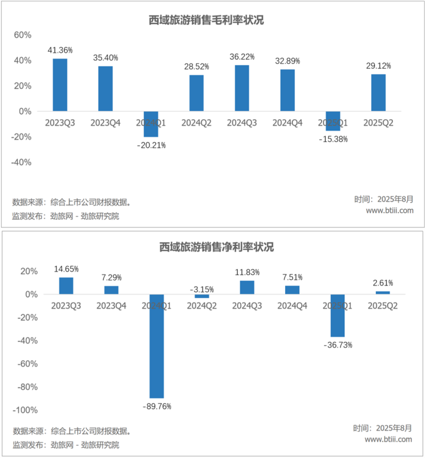 2025年二季度,西藏旅游銷售毛利率29.12%,銷售凈利率2.61%。