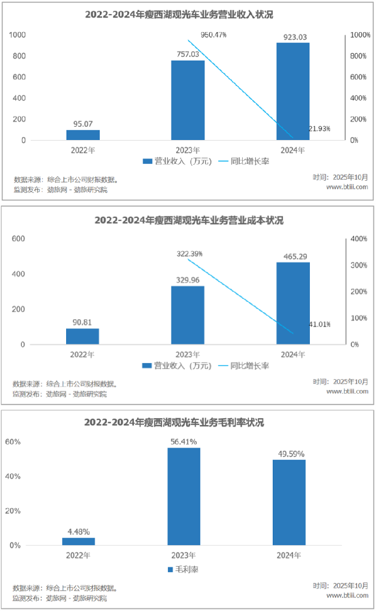 觀光車業(yè)務(wù)實現(xiàn)營業(yè)收入923.03萬元,同比增長21.93%。營業(yè)成本為465.29萬元,同比增長41.01%。毛利率49.59%,比上年下降6.82個百分點。