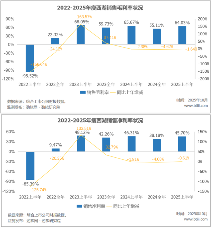 此外,上半年瘦西湖銷售毛利率64.03%,比上年下降1.64個百分點。銷售凈利率45.70%,比上年下降0.61個百分點。